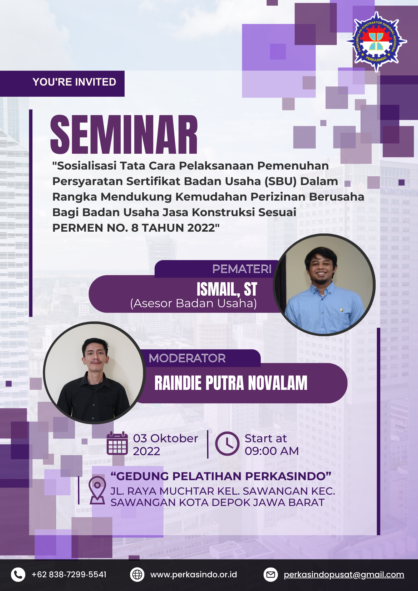 Gedung Pelatihan Perkasindo Jakarta, DKI JakartaHai Sobat Konstruksi, dalam rangka Pemenuhan Berusaha Tenaga Ahli di Indonesia. PERKASINDO kembali menyelenggarakan kegiatan Seminar “Sosialisasi Persyaratan Tenaga Ahli”. Hadiri dan jangan sampai lewatkan kesempatan sharing dan mengetahui info […]